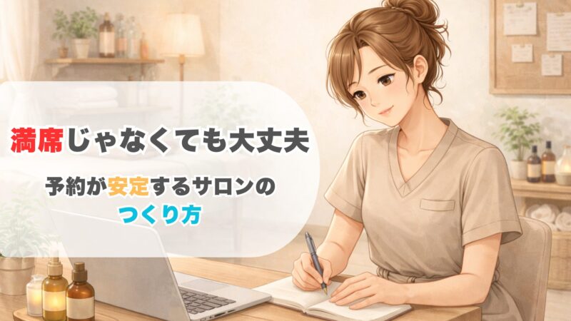 サロン集客がうまくいく状態とは何かを解説。満席=正解ではなく、予約が安定していることが大切です。新規2〜3割・リピーター7〜8割のバランスや、個人サロンが安定して予約を増やす考え方をわかりやすく紹介します。 -