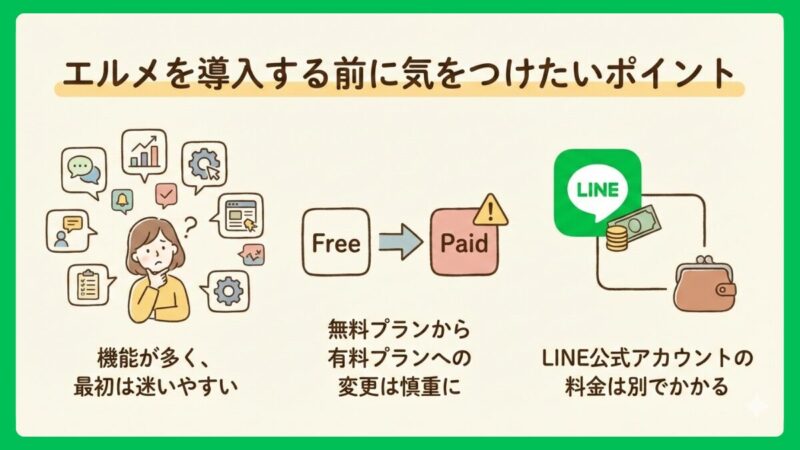 エルメはとても便利ですが、導入前に押さえておきたい注意点があります。