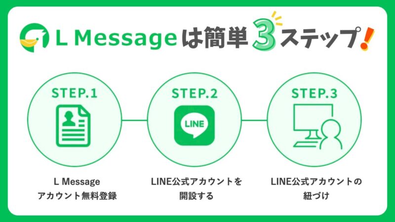 エルメを使うにはLINE公式アカウントとの連携が必要です。次の3ステップで始められます。