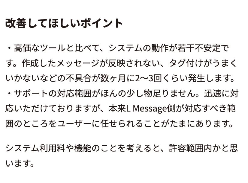 特に、タグ管理やシナリオ配信は、LINE運用やマーケティングに慣れていない場合、少し難しく感じることも。