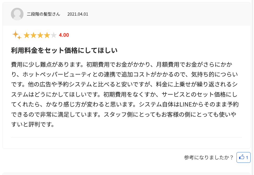 良い口コミでは LINE予約のしやすさ・価格の手軽さ・業務効率化 が高く評価されています。